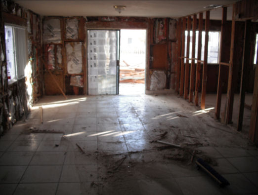 Here is a before and during photo of one of the rooms.