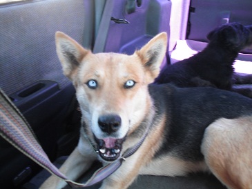 There are a number of strays in our new neighborhood – which is a lot of fun of course. Scout and Tila are huge fans. One in particular has really nice blue eyes – a female german shepherd. Sadly, she appears to be in heat, which is even more sad having recently given birth to three mostly not cute puppies.
