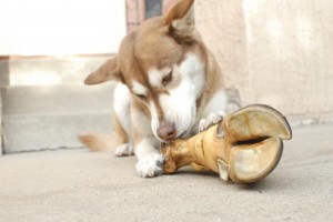 Apparently it was the hoof of a pig (or perhaps it was a javelina). Tila gets pretty in to these sort of snacks. Scout knows his place when she has claimed the treat.