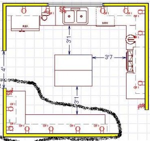 We still have yet to commit to a design on our kitchen. I had previously posted the picture below, but the part of highlited we’ve never liked too much: