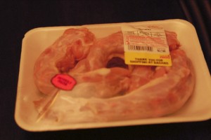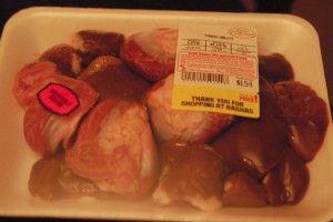 We ran out of our dry dog food last week – but prior to that we had been mixing in some wet stuff. Basha’s grocery store unfortunately doesn’t have the regular kidneys and livers and random pieces of animal that the dogs love, so we had to try something new. We went with the turkey giblets and turkey necks. The neck has a lot of vertebrae, so it’s a bit of pain to prepare for consumption. I probably won’t go that route again any time soon.