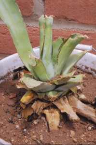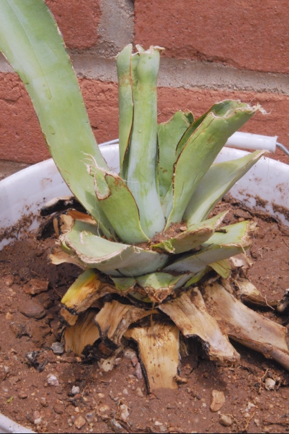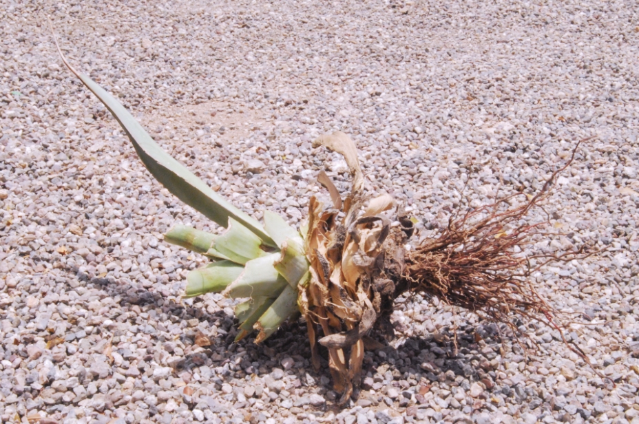 This little one was found near the house we’re currently living in – it looks nearly dead. I planted it in a bucket. At least you can see roots, so perhaps there’s hope. Its hard for me to tell, but I think this is a Paleleaf Yucca.