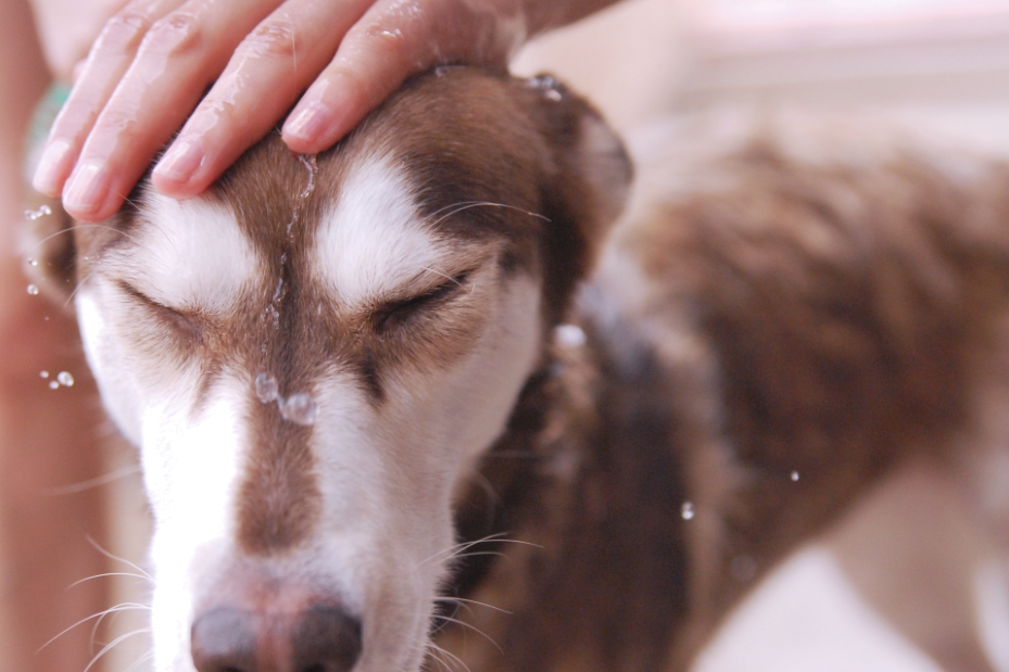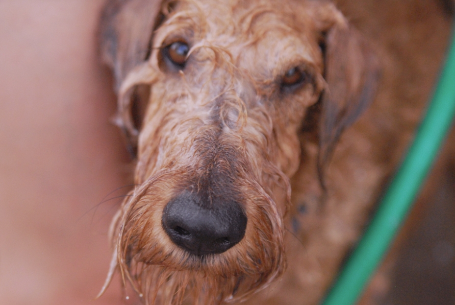 It was bath day for the dogs. Tila is only supposed to have this once a year (so the books say). She was past due. As Jeff and Beth are in Honduras for the week, we also have Walcott who also joined the ranks of the recently bathed. Walcott took to the water pretty well, much unlike Tila who suffers miserably.