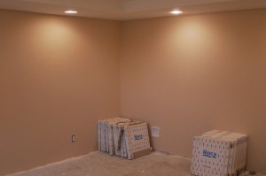 This is the kitchen. We installed a nice skylight in the center which will go over the island. The kitchen is really big which is hard to appreciate in this photo. The island in the center will be six feet by 3 feet. The two lights next to the skylight are for pendant lights which are surrounded by recessed lights.