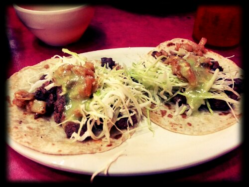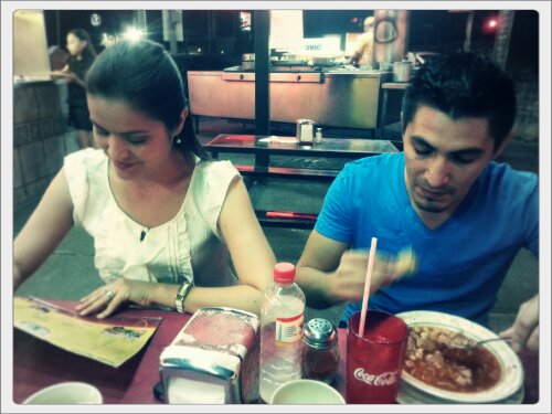 We met Gab for dinner at a place in our neighborhood (he lives a block from us) called El Burro. The food is always good, but way overpriced. Tacos are 24 pesos each (or $2 US), which is high by Tucson standards. I get two carne asada tacos and two beef ribs. I bring the rib bones home for the dogs and they go crazy.