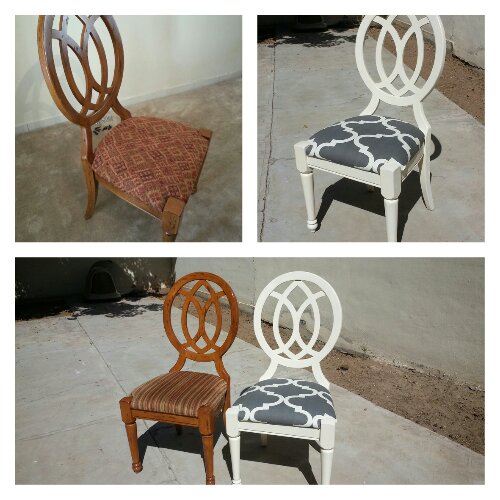 Yun bought these hideous chairs off of craigslist before we left Tucson. I did not think they would ever look good, but after completing one today I’d say it looks pretty great! It took about an hour to do one. We have seven more to do.