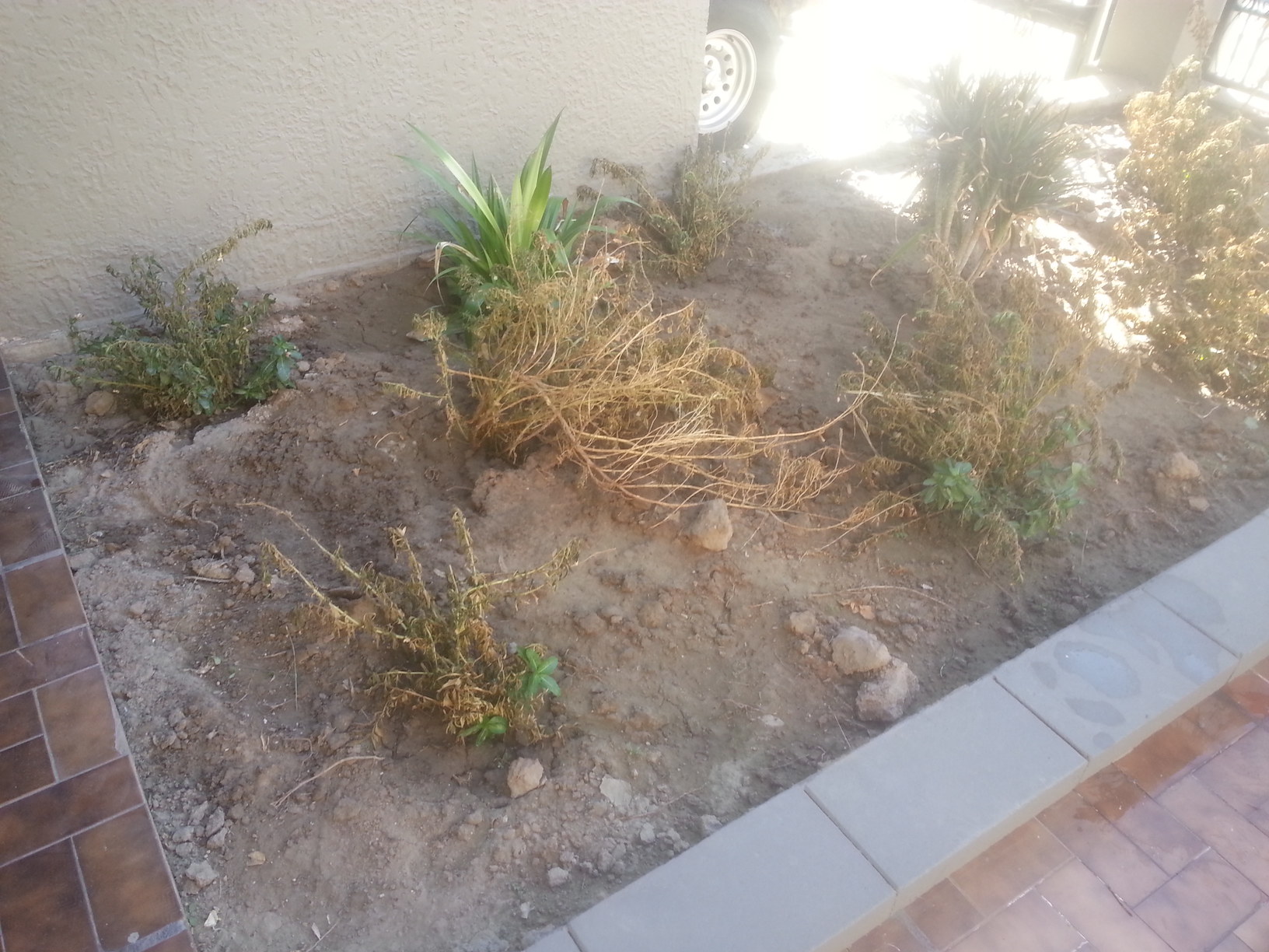This area of the front was no small effort. We uprooted these plants from Gabriel’s house as he was replacing an area for artificial grass. It took hours for four of us to transport and replant them. And then we realized, this area isn’t getting much sun this time of year.
