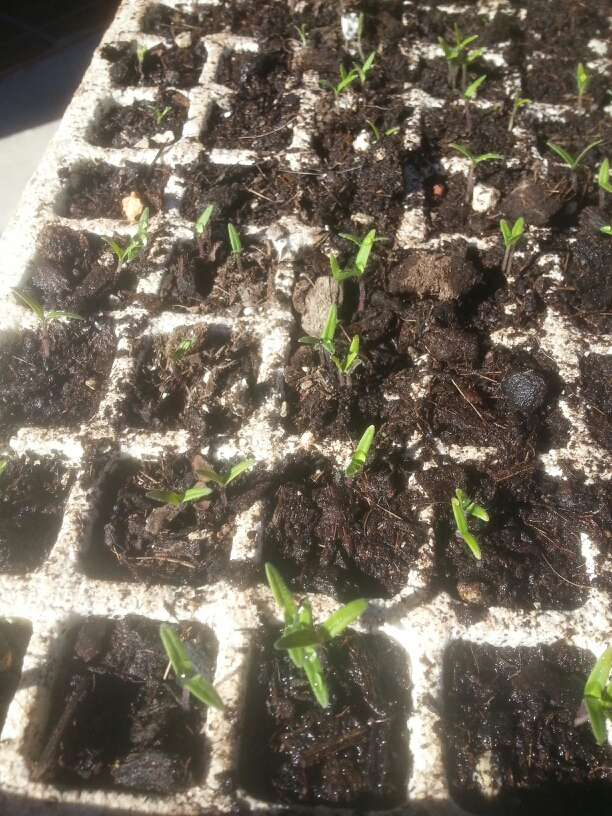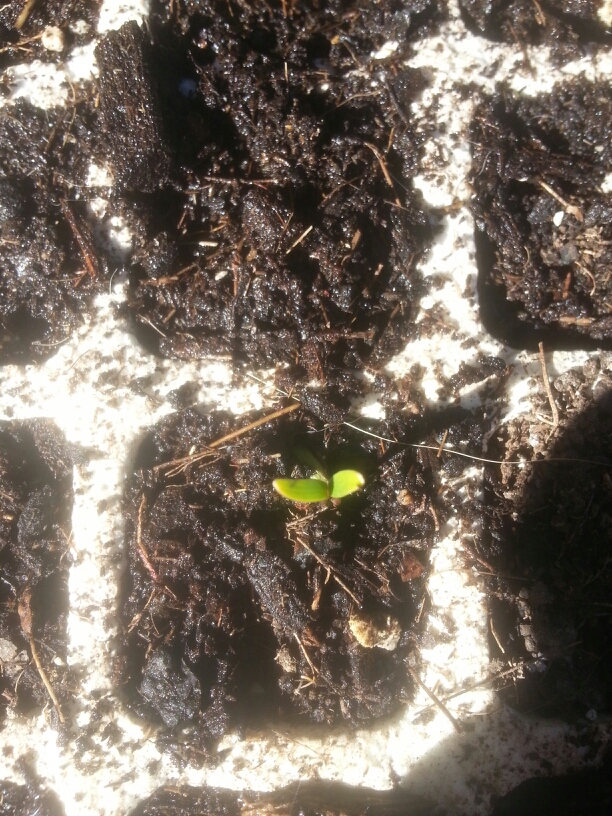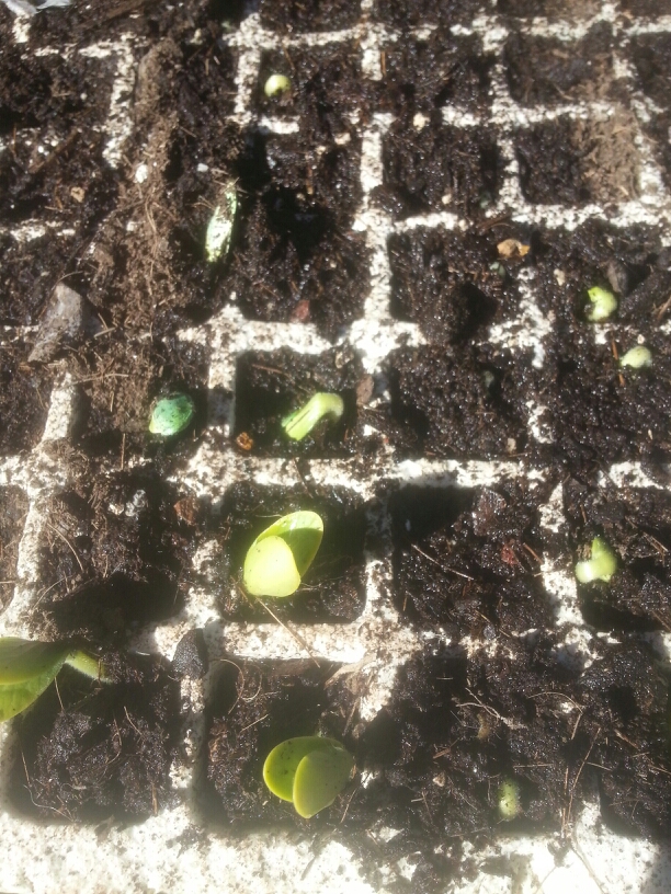 Although it has been rather cold in the evenings. the days have been rather pleasant. This seems to have a positive effect on the seeds sprouting. I’ve also been putting an incandescent lamp over them each night when I bring them inside to keep them warm and to perhaps give them the benefit of the light.