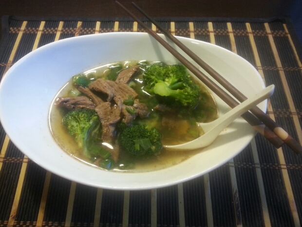This is a beef soup with a lot of broccoli Yun made me. It was rather quite good.