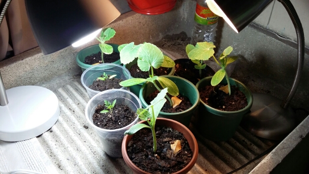 The plants are still going strong. I have transplanted all that I want to keep. I’m hoping to be able to move the squash into the backyard in the next few weeks or so. It’s been so warm that I’m optimistic that they will be able to produce well.