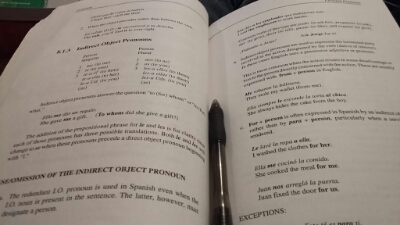 Indirect object pronouns are such a challenge for me. Because that last sentence would be, “Indirect objects me are such a challenge” in Spanish. The indirect object appears before the verb and direct object. My brain (specifically my syntactic parser) is not prepared to recognize an indirect object before a verb and direct object. So in my listening comprehension exercises I am cofusing indirect object pronouns as other parts of speech and then I end up confused. Object pronouns often look like articles. As an example, “La estoy mirando”. Since la is a feminine article that often appears at the beginning of a sentence, I immediately interpret it wrongly. The subsequent verb is the notification that it cannot be an article, but with that information I have to then make a decision regarding the nature of la. Thus I need to backtrack mentally which seems inefficient. But given the ambiguity of la there is no choice. That doesn’t happen in English (well, it’s rather rare as found in garden path sentences). If I see the in a sentence, then my brain knows the nature of the next word before getting to that word (it can only be a noun). Because my brain can anticipate future words in a sentence, it can parse them quicker. But I don’t see how that can be the case in Spanish in certain circumstances.