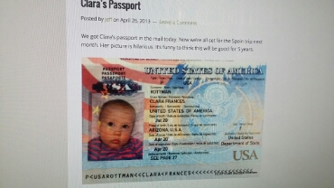 I was scanning Jeff and Beth’s blog moments ago to find some helpful information regarding their trip to Spain a couple years ago. In the process I found Clara’s passport photo which prompted me to check the expiration date on my mine. To my horror, it expired three weeks ago. This is going to be a challenge now as the plan and the tickets we have to travel to Spain are for next Tuesday. That means I have to find my way to Tucson before then and get my passport. Assuming of course they let me back in the country with an expired passport.