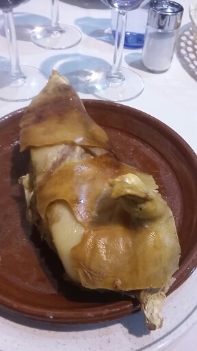 This is a picture of my dinner last night. It was a roasted baby pig. There was an excessive amount of meat in it would have been sufficient for two people to have eaten. Even so I did my best to complete it. Yes, that is the pig’s ear in the photo.