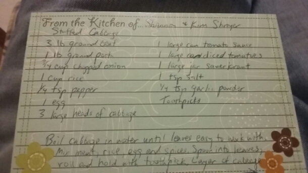 Yunuen found an old recipe card that I got from a former employee in Tucson. It is for glabki, a spectacular Polish dish that I highly recommend.