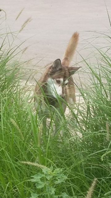 Ever since she’s had the taste of lizard in her mouth, she loves the hunt. They tracked one down into the bushes again this afternoon.