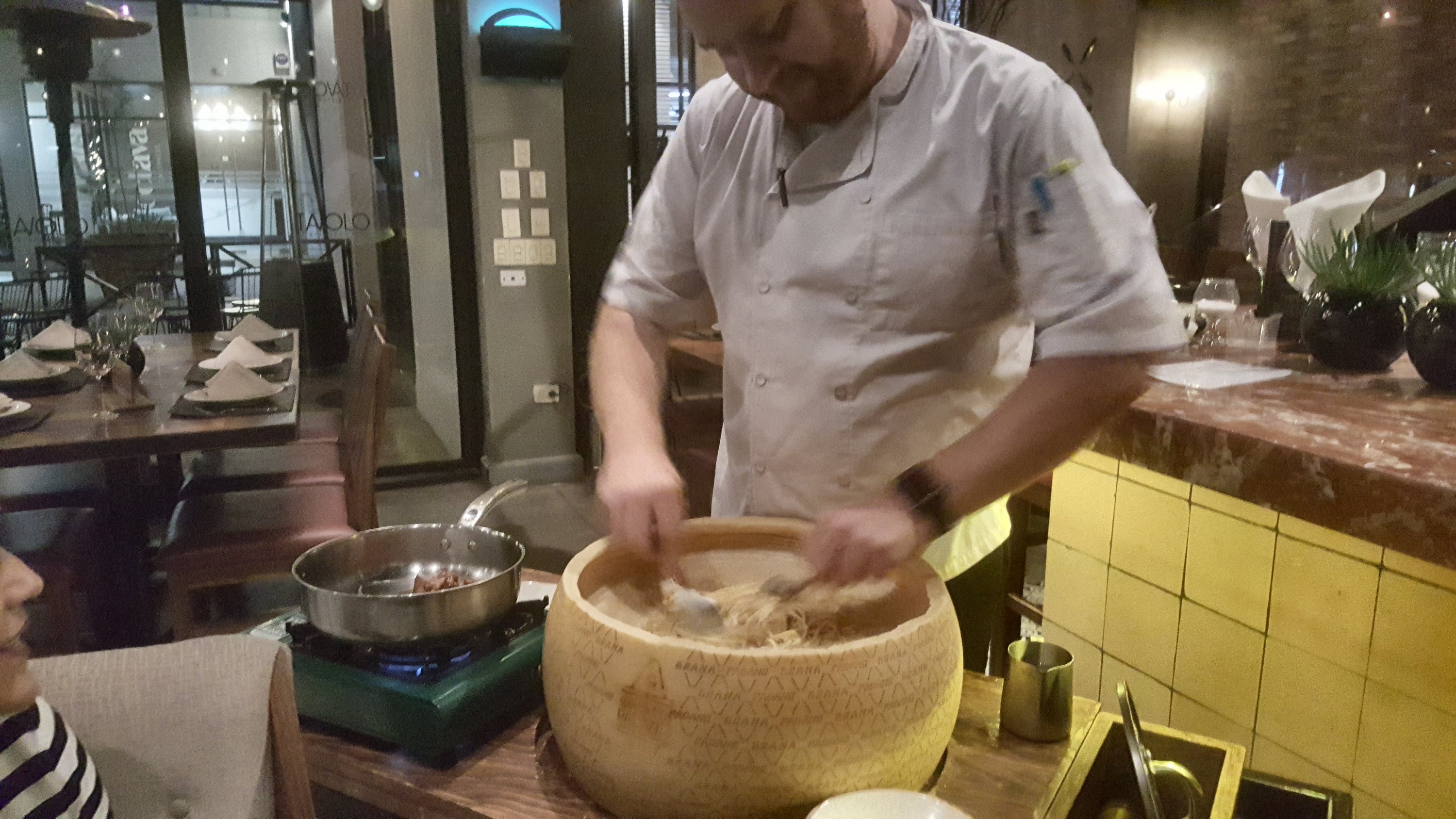 He prepared my meal table side in a large wheel of cheese. It was magnifico.