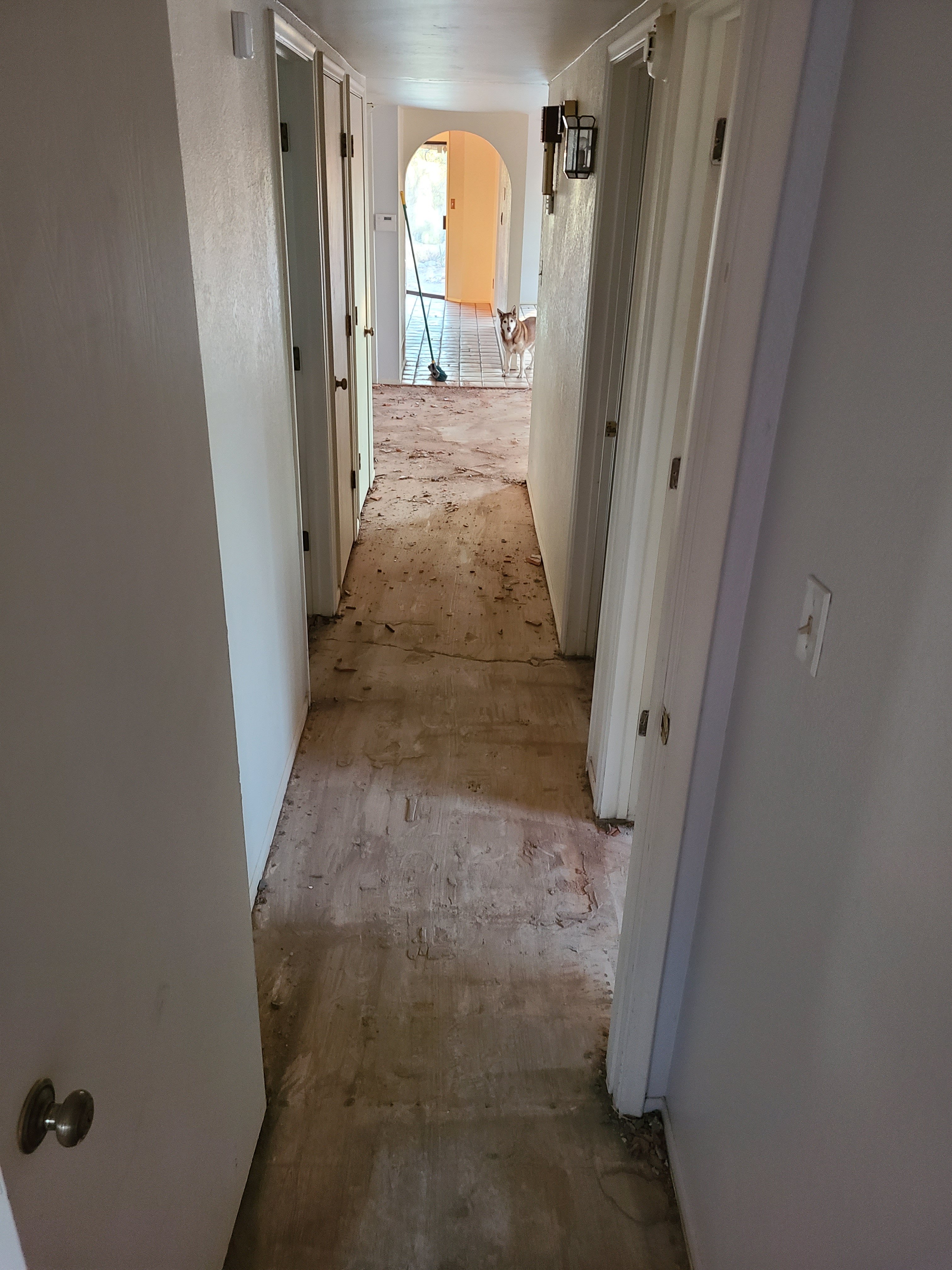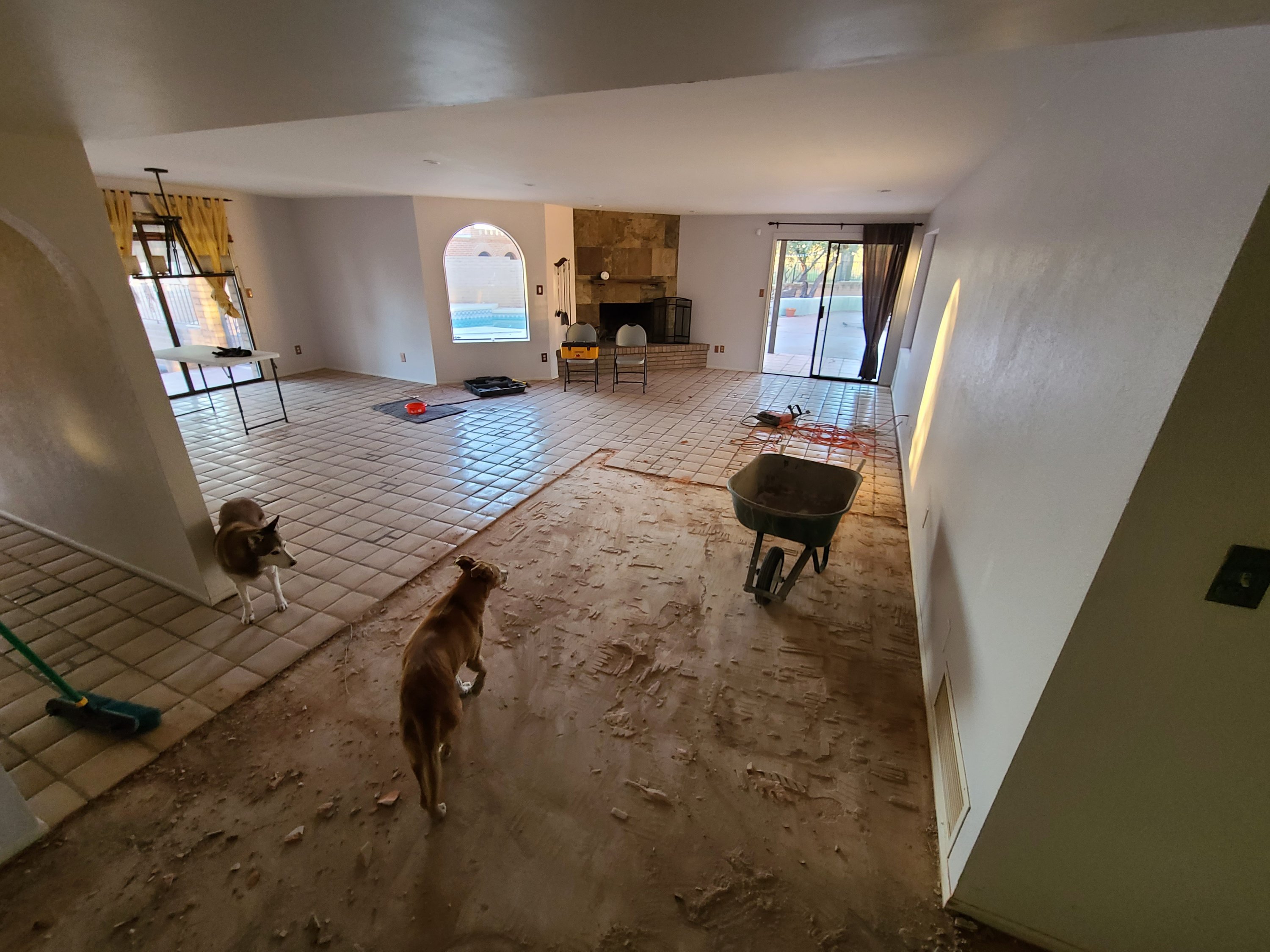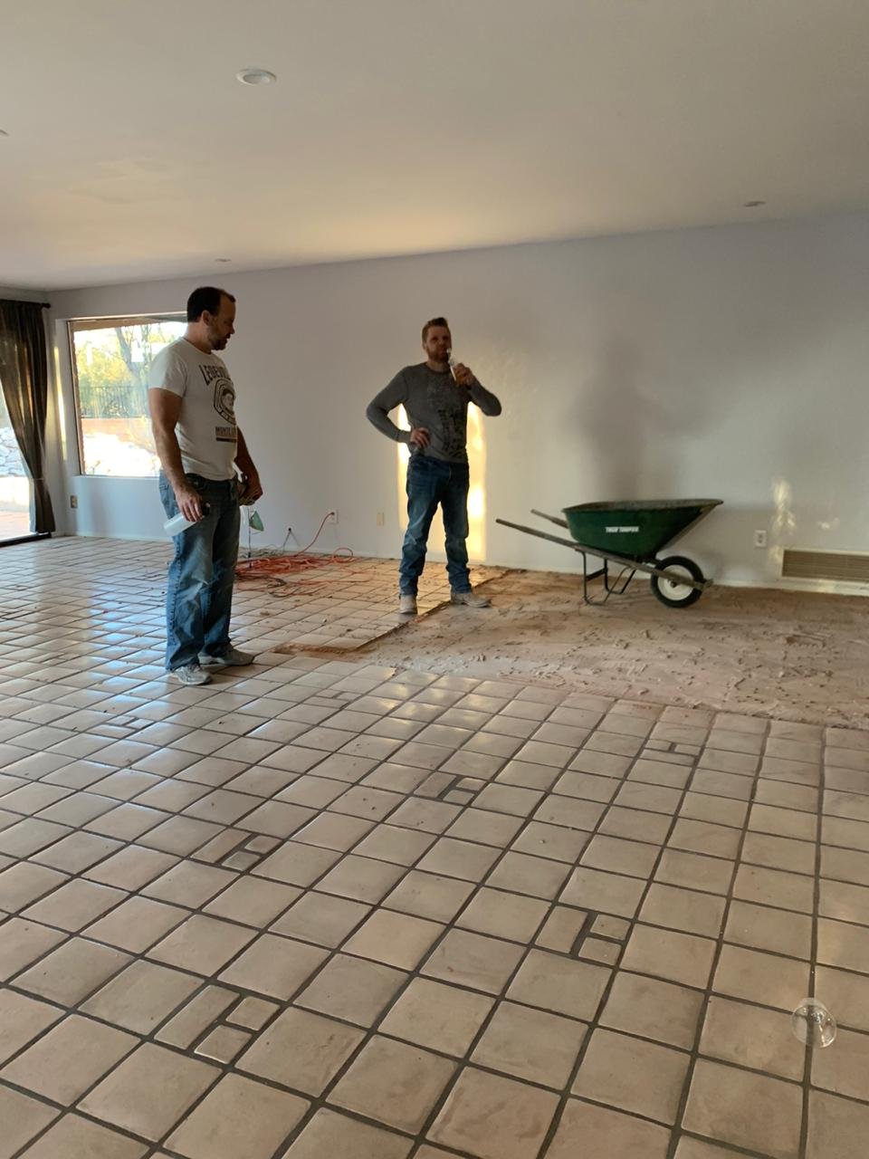 Matt and Dana came over today to help us with some demo. Matter my continued with the jackhammering, finishing the master closet and then we moved on to the hallway period from the hallway we moved into the formal living room area. Progress is so much faster with 2 people doing this.