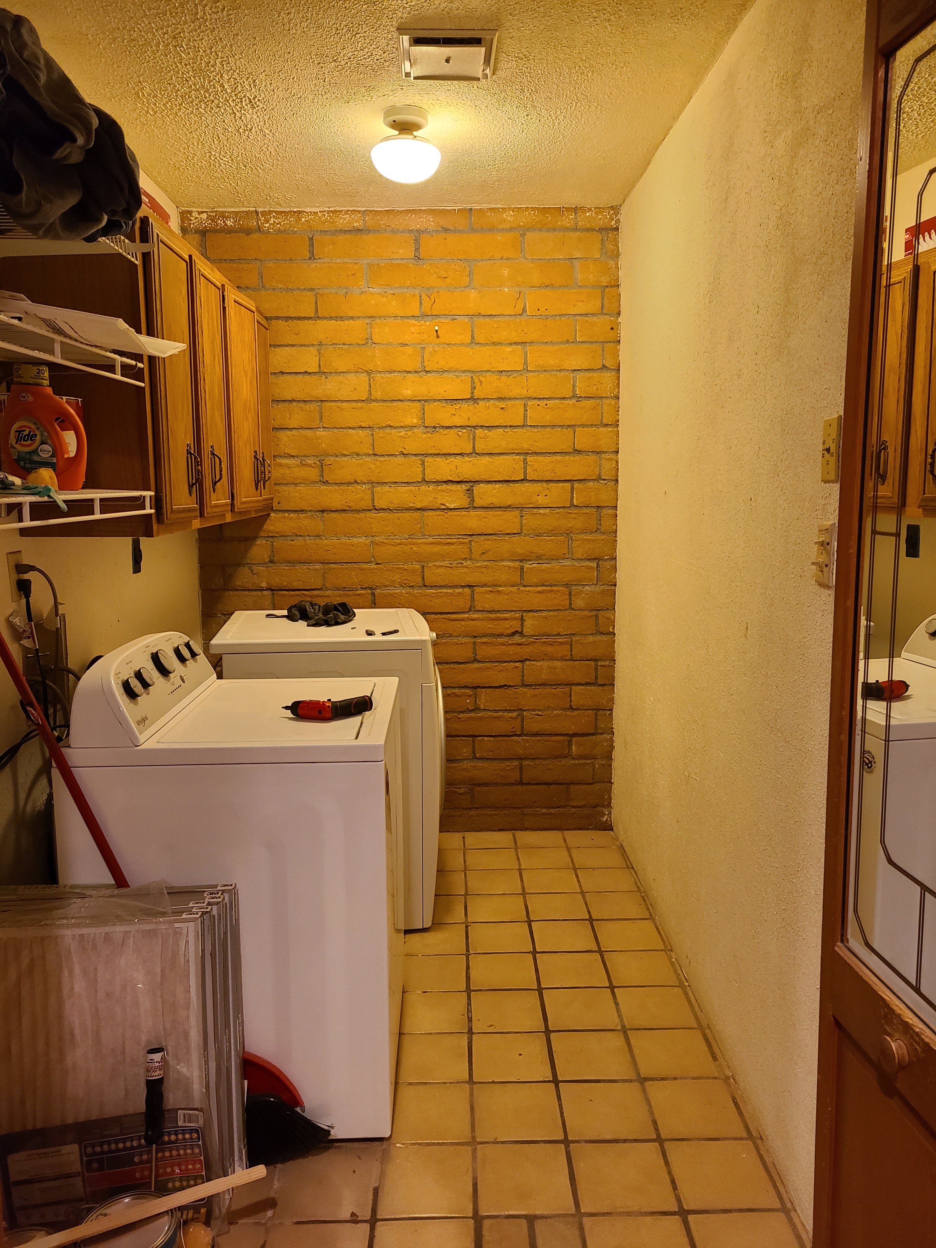I removed the shelving from the laundry room on the right hand side. I think we will rearrange the room so the washer and dryer will be side by side facing the brick wall. That should open things up quite a bit.