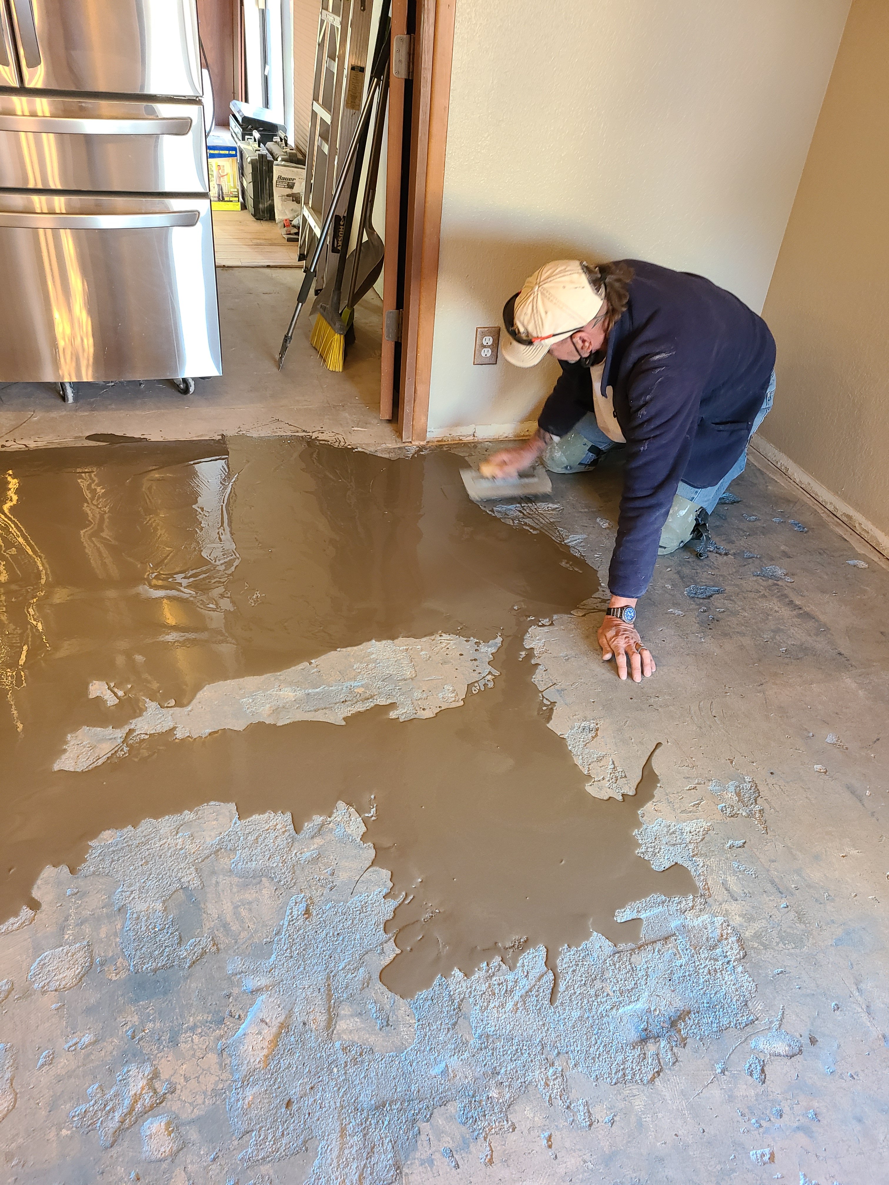 The kitchen floors were such a mess I needed to level them. Of course I’ve never done that before and watching YouTube tutorials didn’t give me enough confidence to do it myself. Turns out, I could have done myself, but instead I employed someone to come out and do it for me.