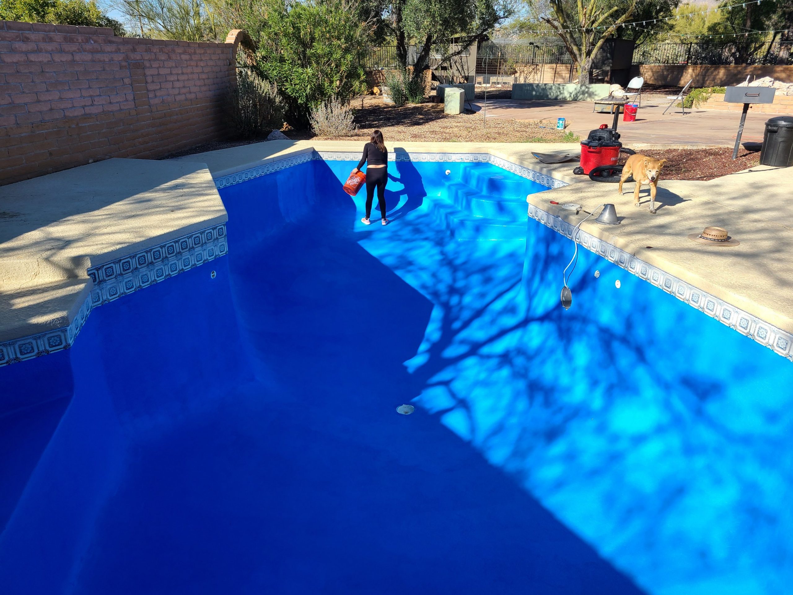 When we bought the house, the pool was not in the best condition. We knew at some point we were going to have to have it re surfaced. Matt and Dana have had quotes over $10k to do the job. Since we have a long list of priorities over something like that, I thought I would give painting the pool a try.