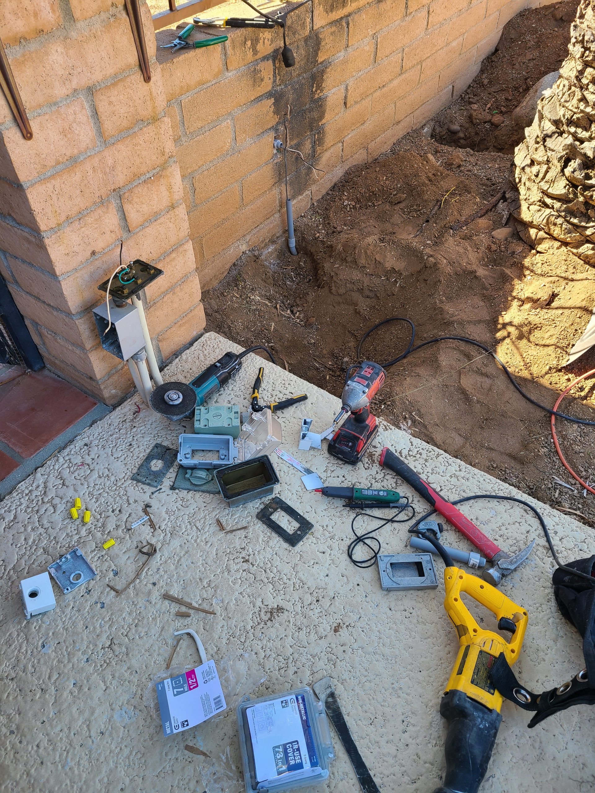 Had some slow but major success with the pool light. When I painted the pool a few weeks back I replaced the burnt out bulb that was there, with an LED multi color upgrade. The problem was the circuit had been previously cut, so I had to reconnect. No small task.