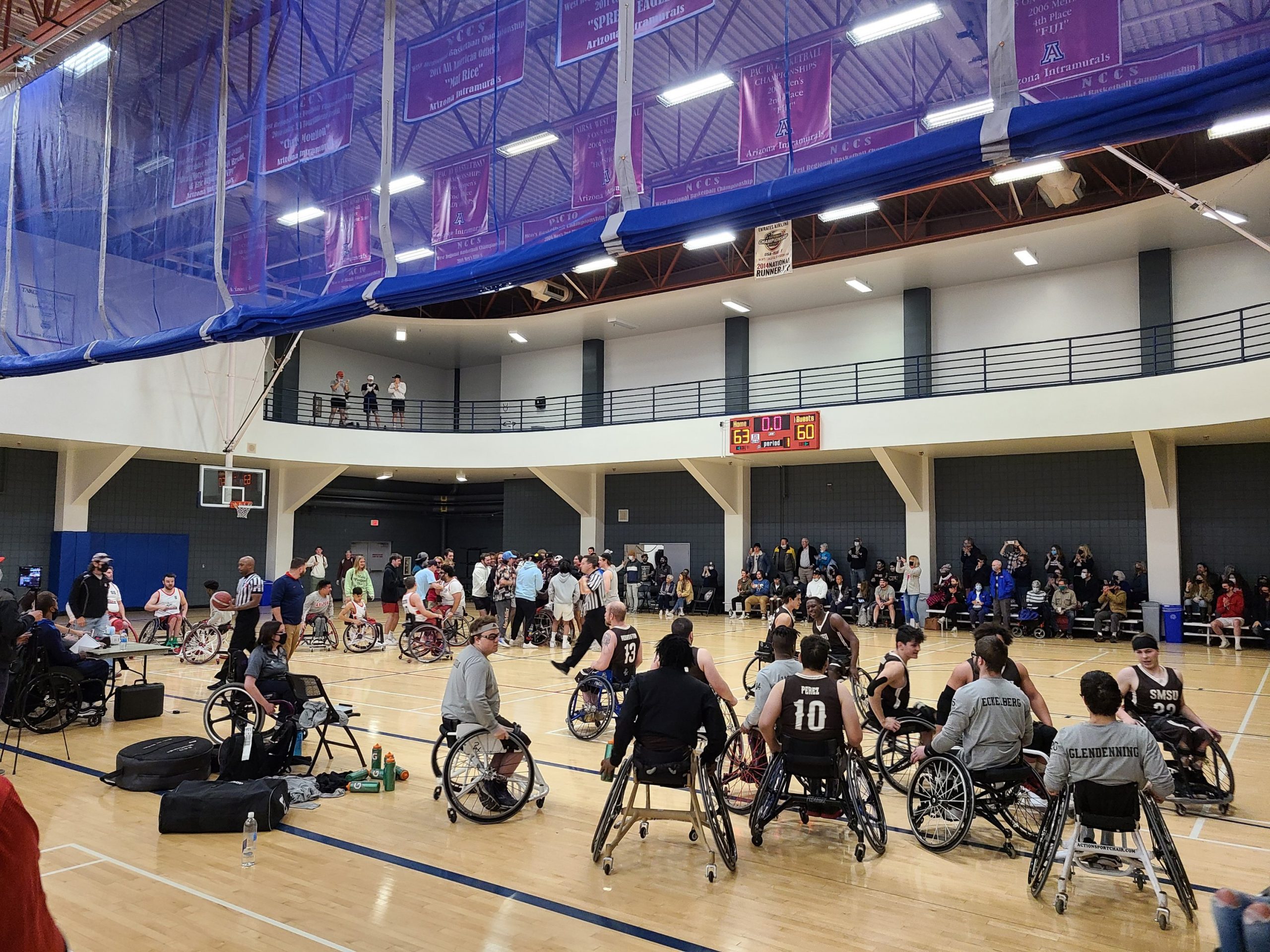 There is a young college guy from our church that we look after from time to time. He plays basketball in a wheelchair. Last night we were able to go to one of his games for the first time. It was a fun experience. This was his third game of the day and I am sure was exhausting. Even so, they won all three.