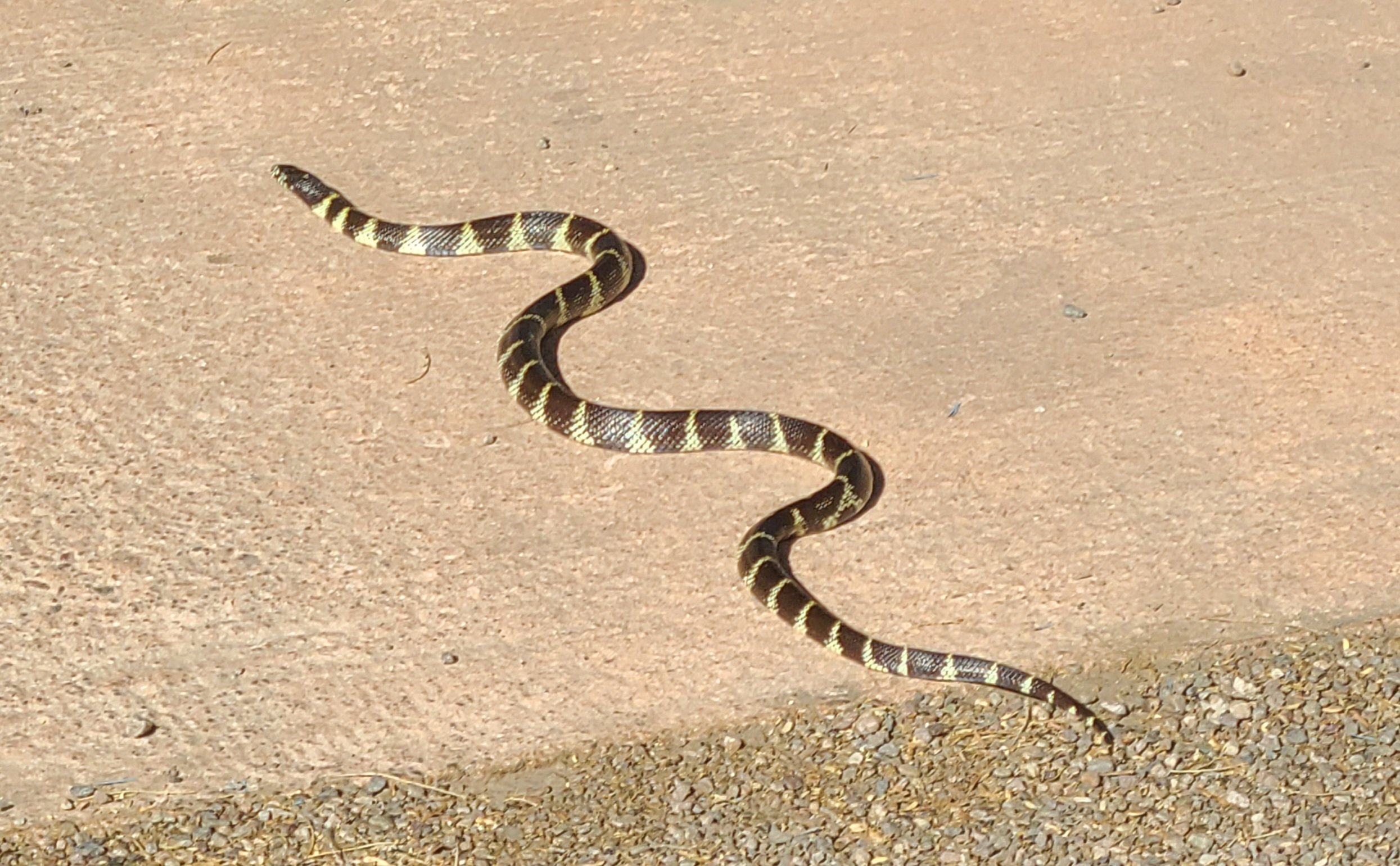 Good size king snake made an appearance yesterday in the car port. Hopefully she was on her way to eat a nest of baby rattlers.