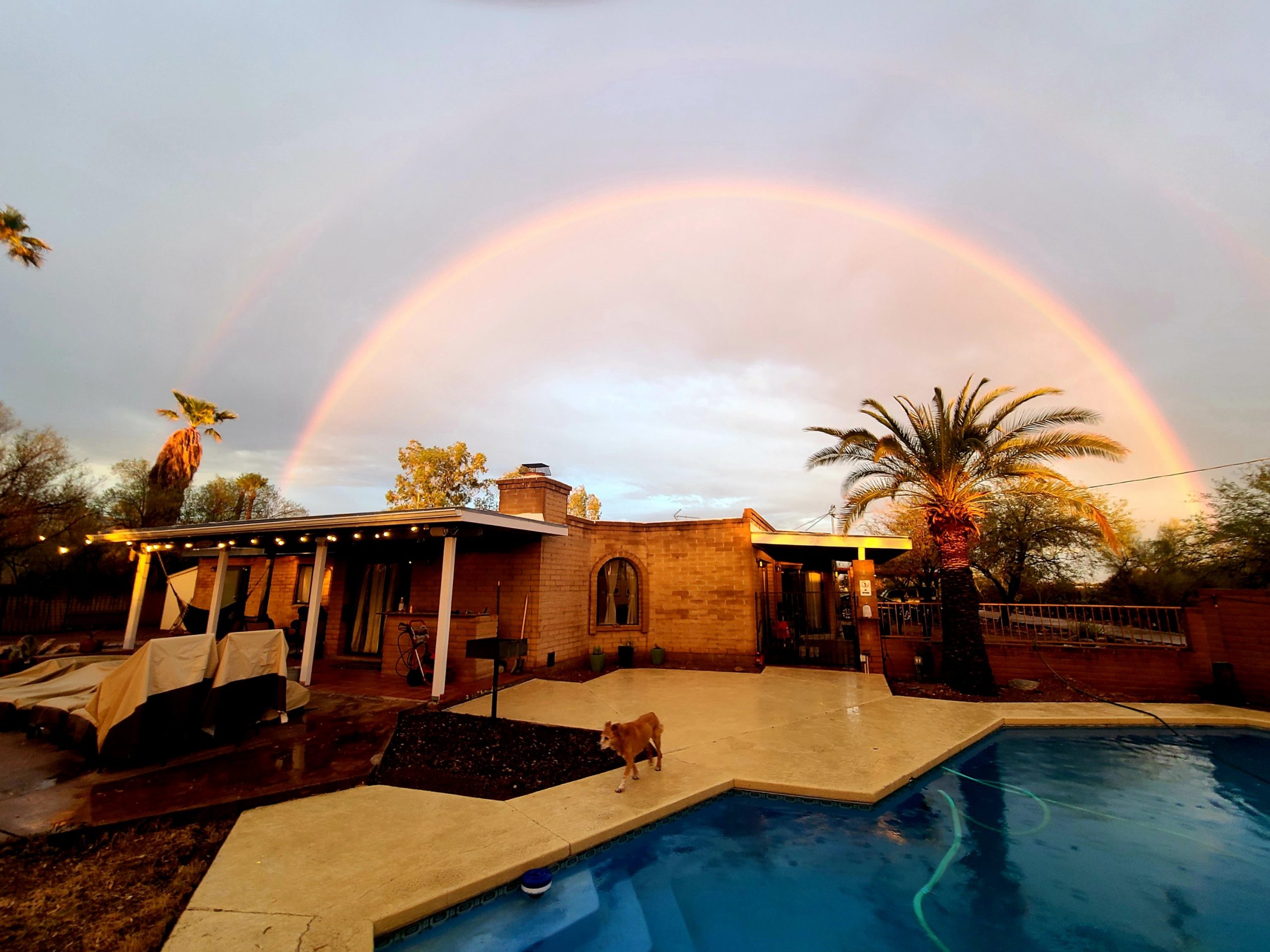 The monsoons hit hard tonight. The rain poured for hours. In the end, we cleaned the pool deck in preparation for tomorrow. While we were doing that, we had this glorious view.