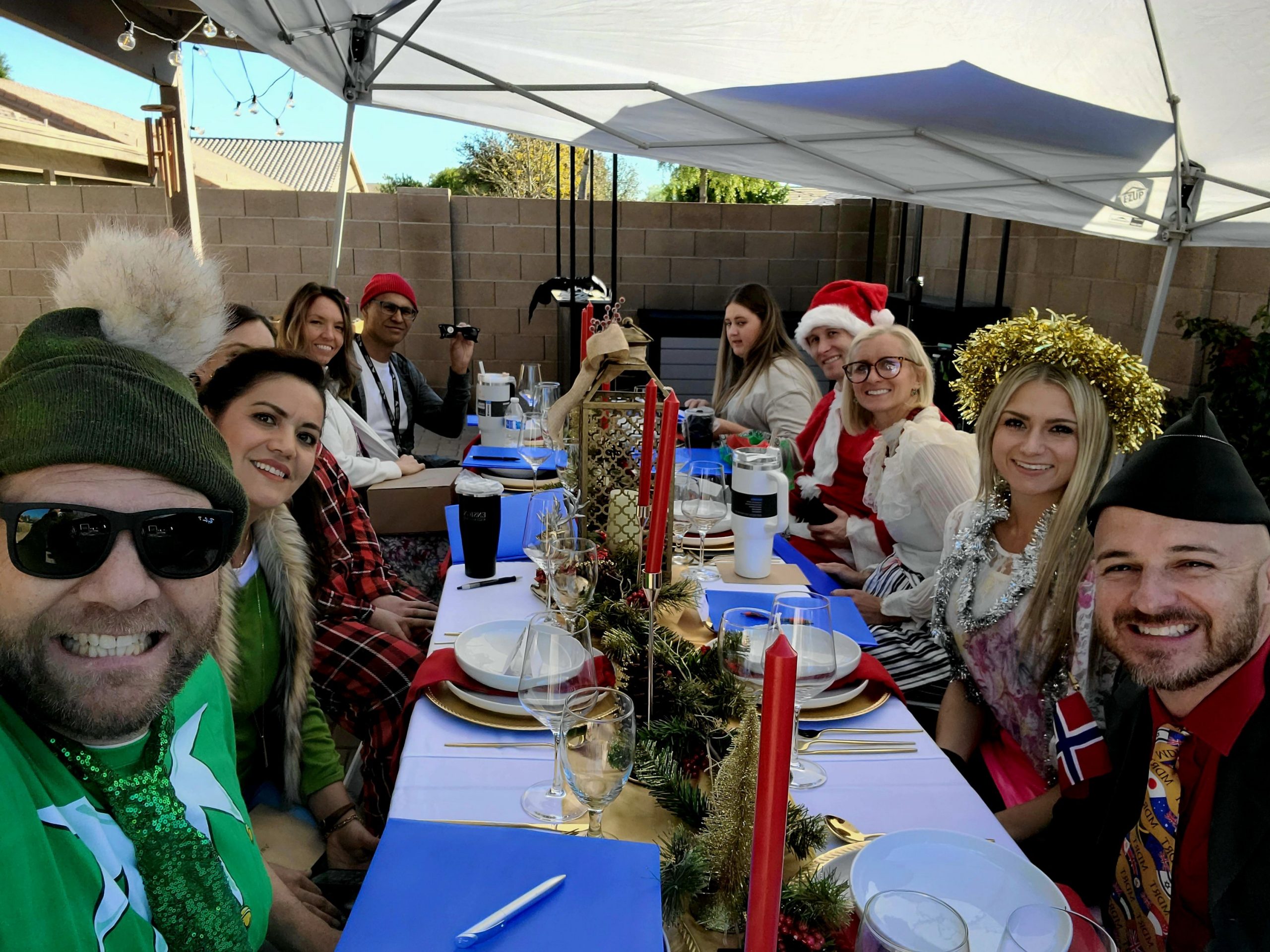We had a nice steak dinner catered by Firebirds and a murder mystery event.