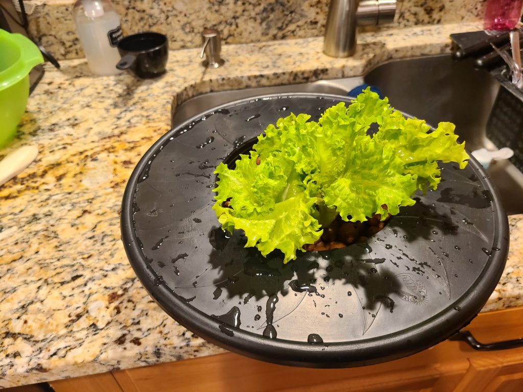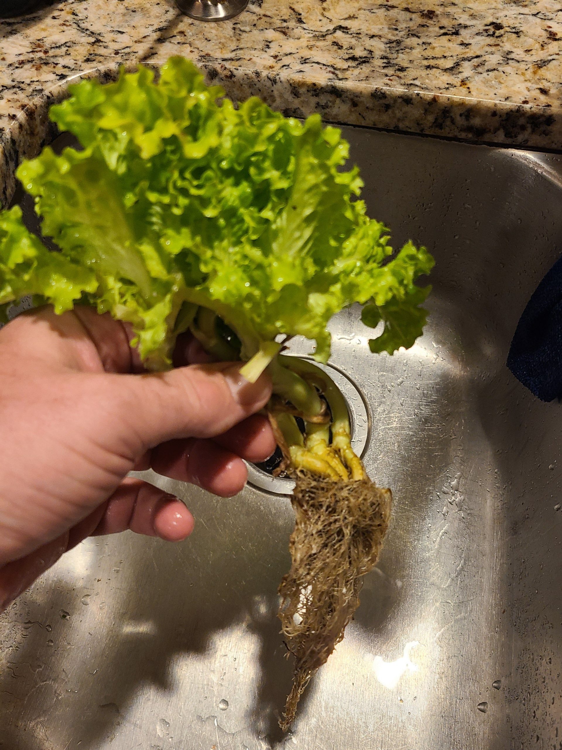I bought some lettuce since it was in season. It was growing in dirt, so I had to rinse that out of the roots.