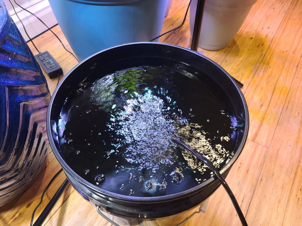 I have a lot of LED plant lights that have timers, so I am using that to light this thing up for 12 hours a day. I need to drill a hole tomorrow for the hose to get into the bucket so I can seal the lid tight. I assume this will reduce the amount of water loss from evaporation.