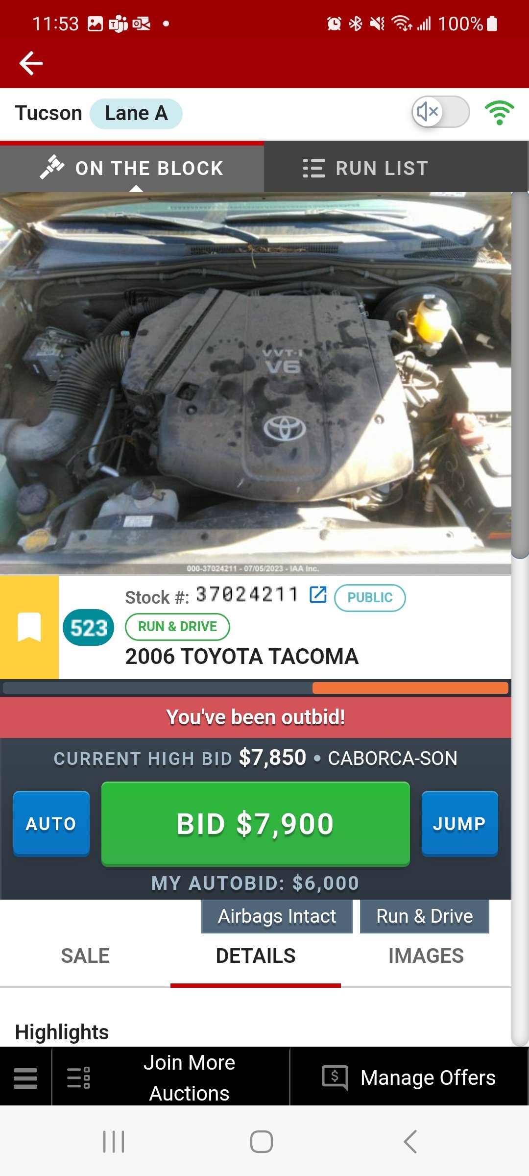 There was a Ford F150 that went for about five grand that I liked more than this toyota but I didn’t bid on it because I didn’t want to win two trucks. We will keep trying.