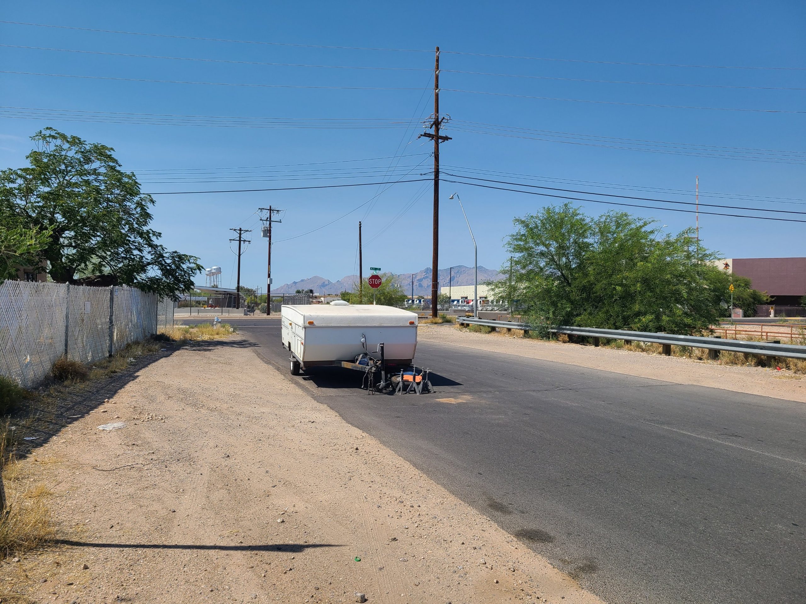 I was a bit optimistic we’d make it home fine as the tires on the trailer were brand new. We made it maybe 5 minutes before we realized the lug nuts weren’t on tight enough and most had come off. That stranded us on the side of the road while Yun went to track down some lug nuts and a wrench.