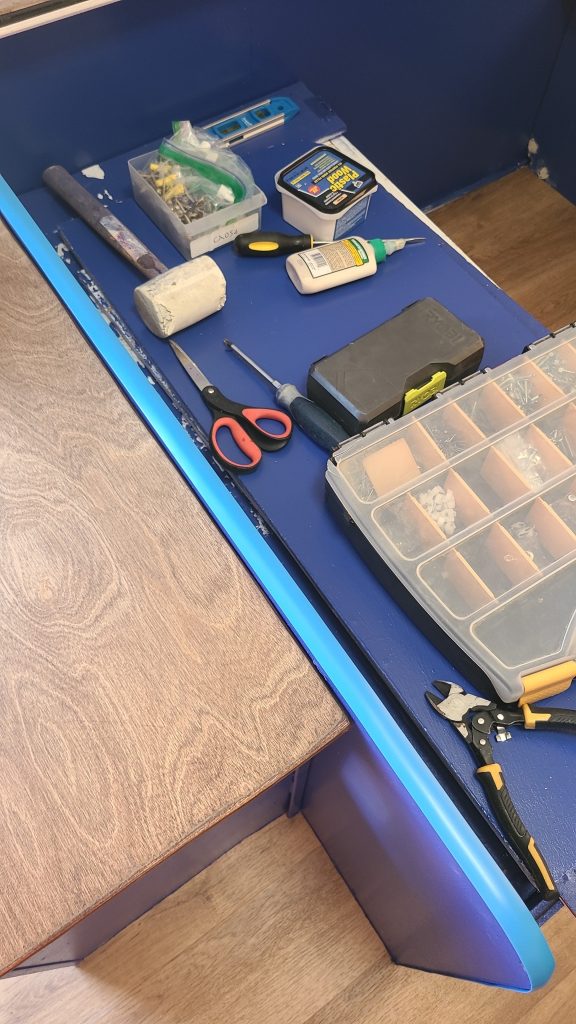 The first step was to rip everything out of there – but rip gently, because I’d need to put it back in.