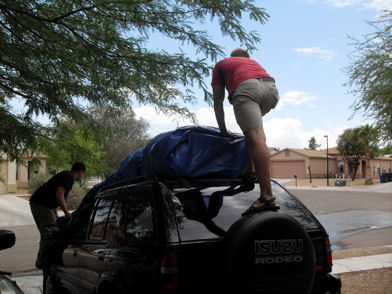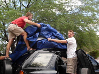 We had some nice tarps to wrap everything up on the roof – which was a good thing given we did hit some rain on the way down. Having everything on the roof made for a much more comfortable ride.