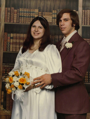 Olan Mills Backdrop #11: The Library, one of their most popular themes, as seen in this photo of the young Unabomber and his wife.