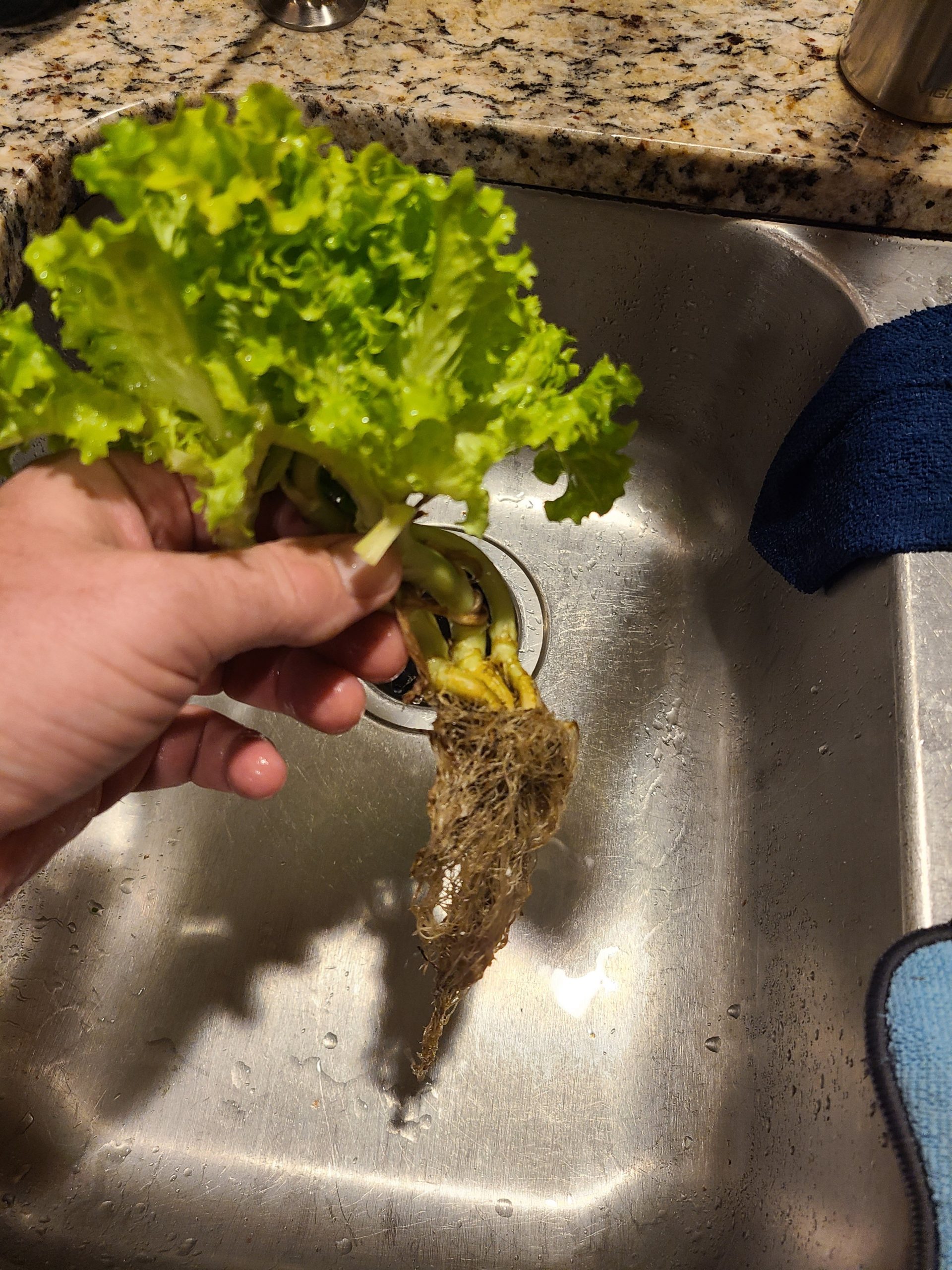 I bought some lettuce since it was in season. It was growing in dirt, so I had to rinse that out of the roots.