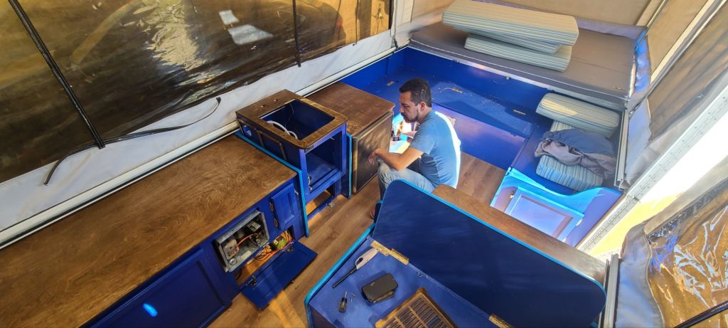 Mostly done. Orlando came up to work this weekend. Since I got the truck this last week, I wanted to try and get the camper done as quickly as possible.