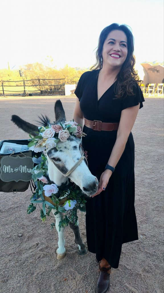 It was a beautiful outdoor wedding with a cowboy theme. I borrowed some boots from a friend in Mexico.